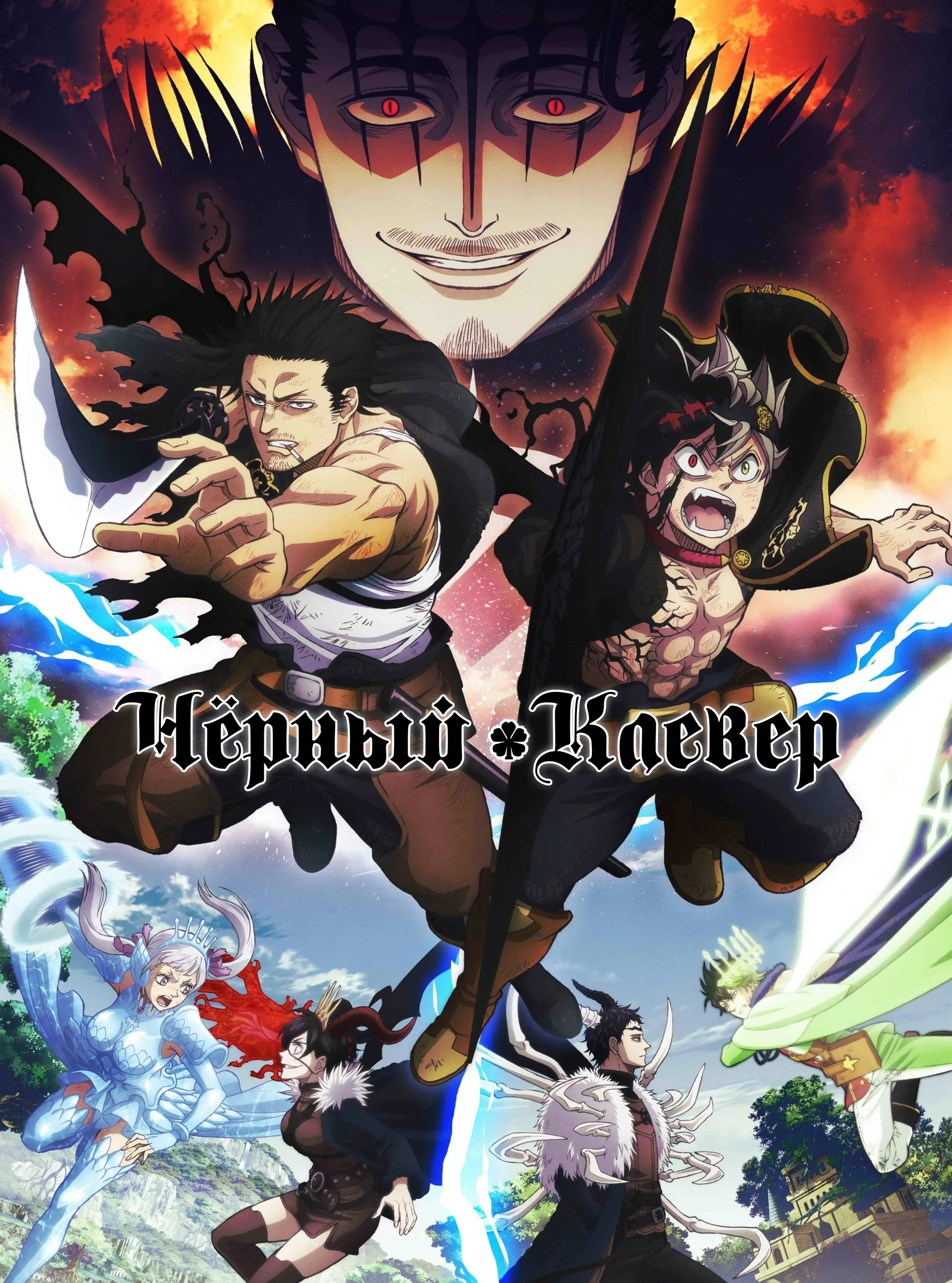 В мире, где статус измеряют силой заклинаний, сироты Аста и Юно мечтают о вершине — титуле Короля магов. Они выросли вместе, но пути разошлись: Юно — спокойный гений, подчиняющий стихии, Аста — шумный упрямец без капли магии, который делает ставку на выносливость и характер. На церемонии выбора гримуаров судьба подбрасывает каждому свой знак, и давнее соперничество превращается в обещание встретиться на самом верху. Впереди — отбор в рыцарские отряды, сумасбродные напарники, миссии на грани и тени заговоров. «Чёрный клевер» — яркая история о том, как настойчивость способна спорить с талантом, а мечта стать сильнейшим становится дорогой, где без товарищеского плеча не выиграть ни одной битвы. Здесь шутки соседствуют с отчаянными дуэлями, а вера в себя — с магией, что переворачивает мир.Чёрный клевер — все сезоны и серии онлайн